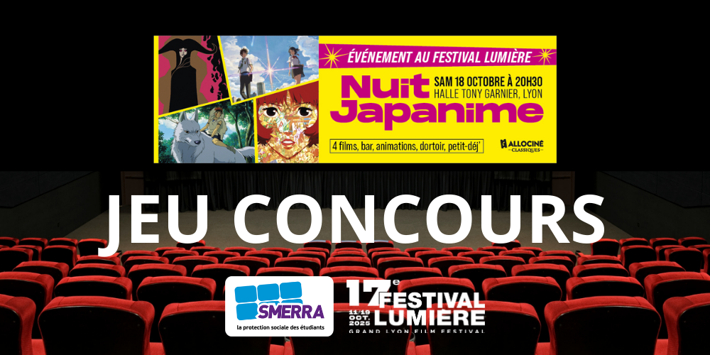 Vous rêvez de passer une nuit entière au cœur de l’animation japonaise ? 🎬 La SMERRA et l’Institut Lumière vous font gagner 2 places pour la Nuit Japanime du Festival Lumière !